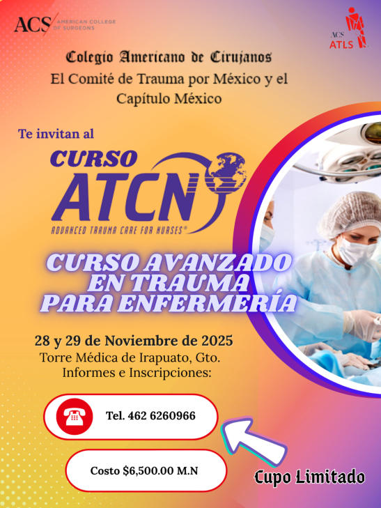 Capítulo México del Colegio Americano de Cirujanos Sur 136 # 116 1er Piso. Edif. Donald Mackenzie. Col. Las Américas México, D.F. C.P. 01120Tel/Fax: 5552733948 / 5552733949 555230-8000 Ext. 8995 Whatsapp 55 6450 7580informes@facs.org.mxAviso de Privacidad